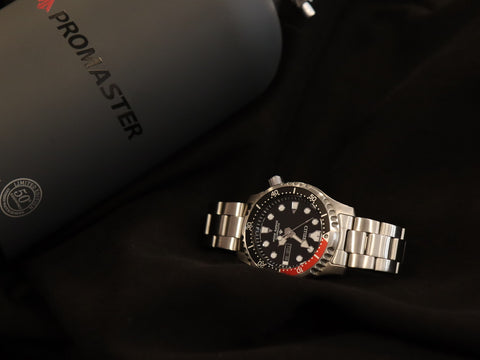 Le bracelet acier est équipé d’une boucle déployante avec un système de rallonge de bracelet pour pouvoir enfiler la montre par dessus la combinaison. Etanche jusqu’à 200 mètres, cette Citizen Promaster Diver saura vous accompagner dans toutes vos aventures terrestres et sous-marines.