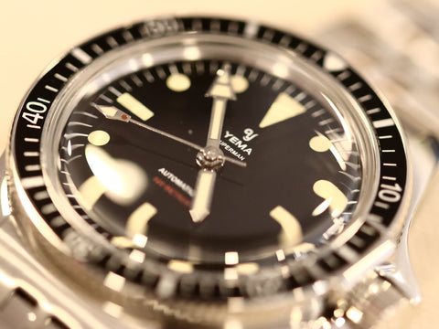 Pour ce qui est de l’esthétique, Yema a mis repris les codes propre aux modèles Superman, un cadran noir très épuré avec des aiguilles propres à la plongée. Les index donnent un effet patiné en héritage à la longue lignée de la gamme. Le boitier en acier inoxydable 316L est mis en valeur par une alternance de polissage effet brossé et miroir rendant la montre aussi belle qu’elle est pratique. Elle est livrée avec un bracelet réalisé dans le même acier que la boite reprenant cette alternance de finition, offrant une réelle harmonie au poignet.