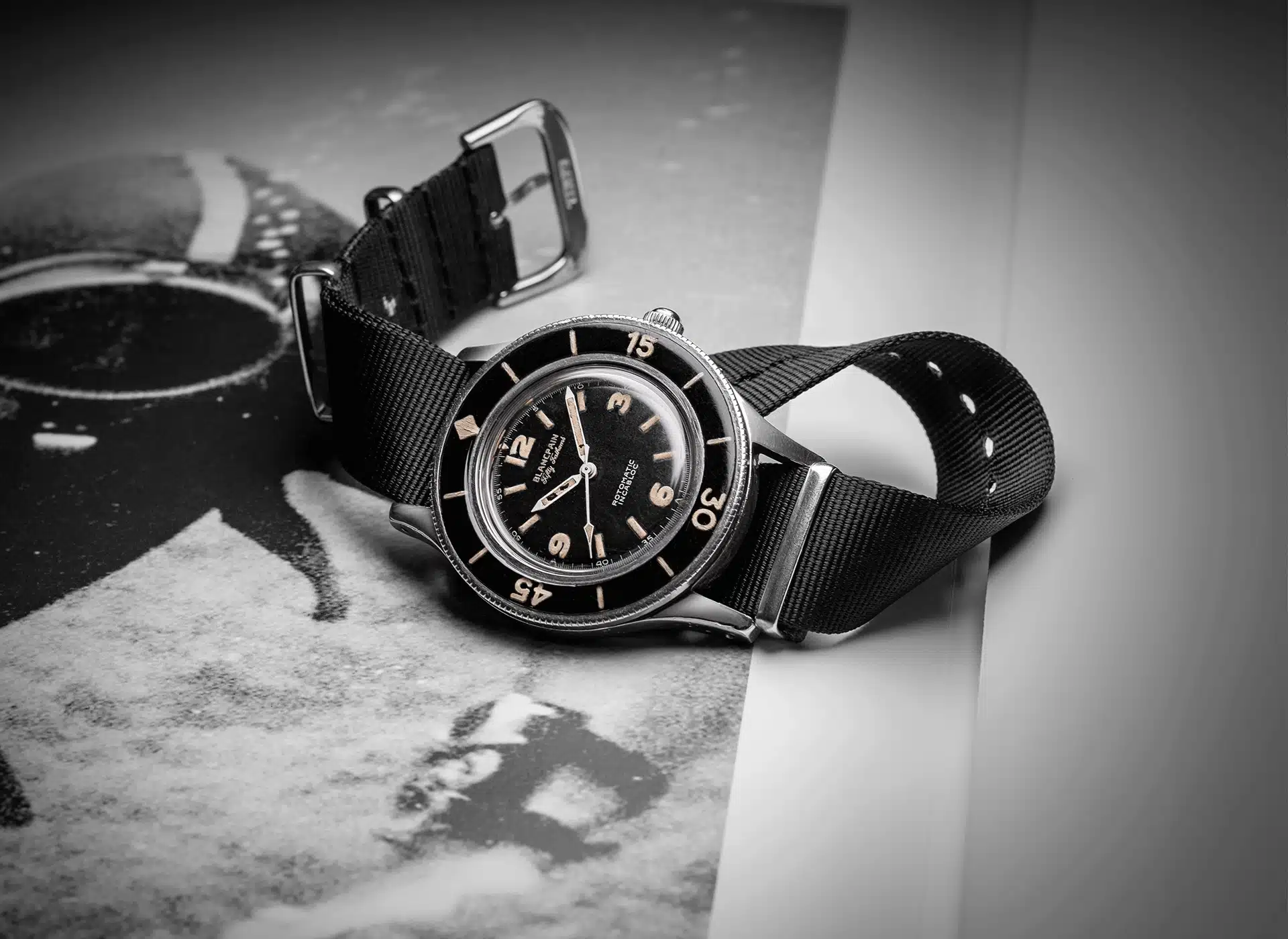 Dans les années 1950, la maison marque l’histoire avec la Fifty Fathoms, première montre de plongée professionnelle moderne, conçue en collaboration avec des plongeurs de la Marine nationale française.