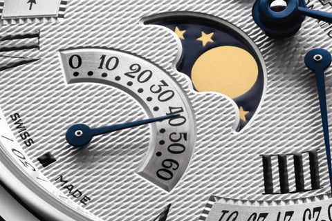 Grâce à ce système, la dérive complète d’un jour sur votre calendrier lunaire ne se produit que tous les 122 ans. La phase de Lune astronomique est une complication que l’on retrouve dans la haute horlogerie.