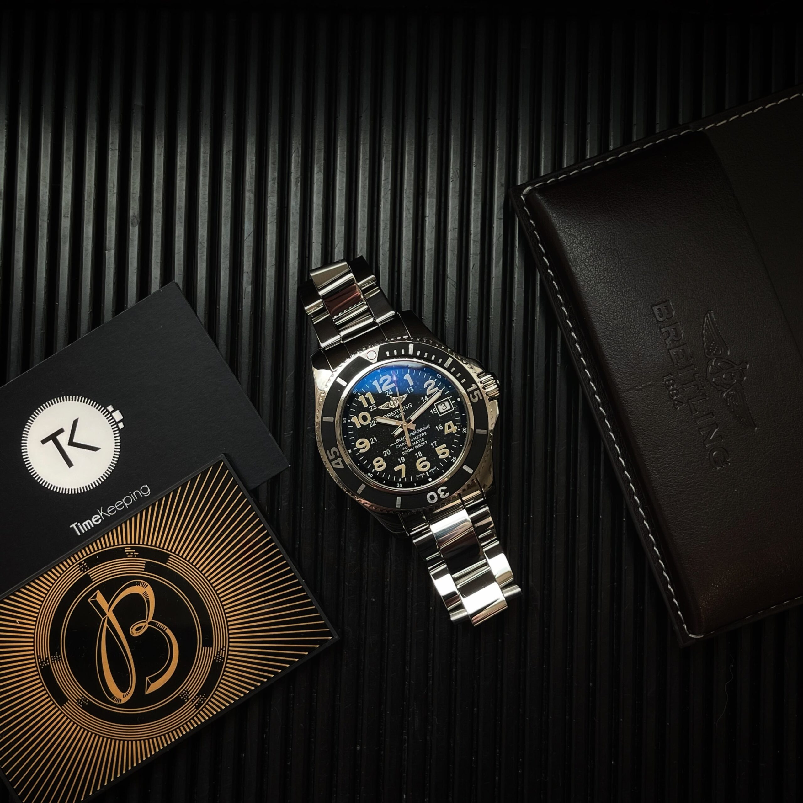Timekeeping n’est pas affilié à la marque Breitling® nous sélectionnons des pièces d’exception vintages, modernes ou de collection, authentifiées et contrôlées par nos horlogers. Breitling est une marque horlogère suisse de renom fondée en 1884. Réputée pour sa précision et sa performance, elle propose des montres emblématiques qui allient style et fonctionnalité. Dès ses débuts, Breitling s'associe à l'aviation. Elle fournit des instruments de chronométrage de haute qualité pour les pilotes. Aujourd'hui, la marque continue d'innover avec des montres fiables et technologiquement avancées, tout en conservant son héritage d'excellence horlogère. Breitling incarne l'esprit d'aventure et d'audace, captivant les amateurs de montres du monde entier.
