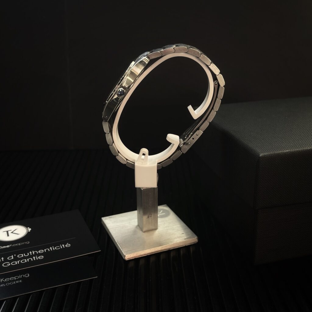 • Montre neuve : elle est issue directement du réseau officiel, jamais portée, livrée avec son écrin d’origine, sa carte de garantie internationale et ses papiers complets.