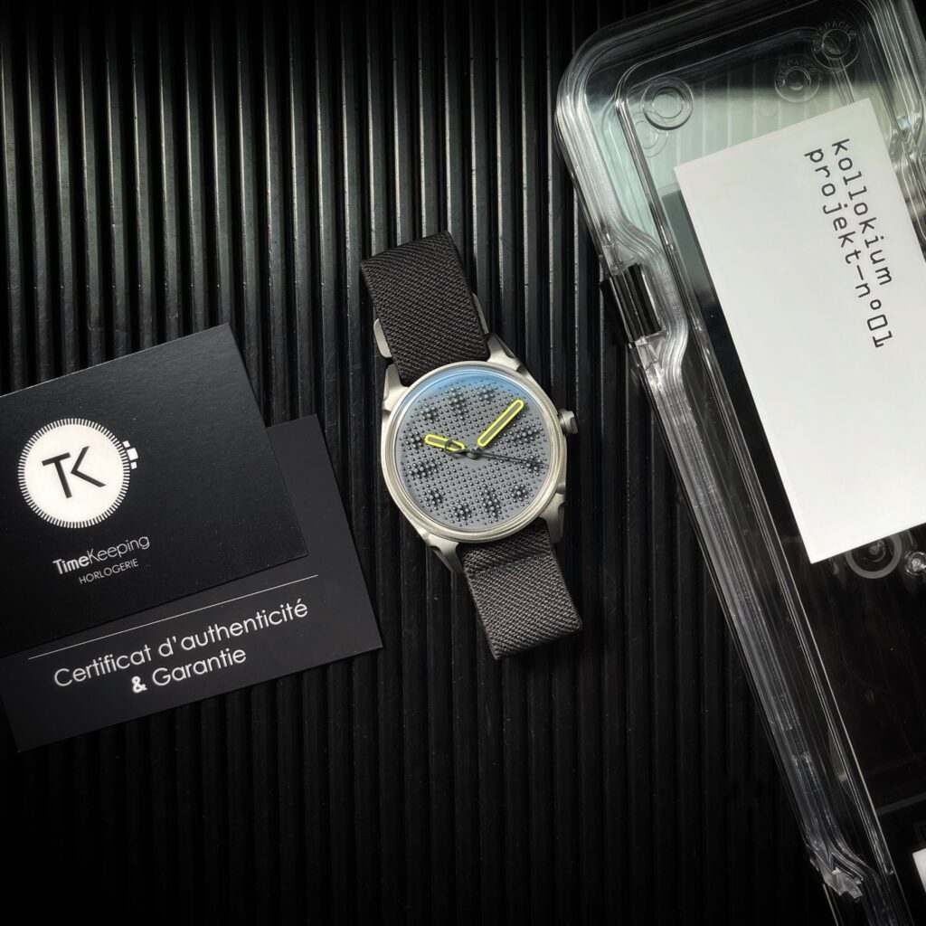 La Kollokium – Projekt N°01 est une montre contemporaine qui allie design avant-gardiste et savoir-faire horloger traditionnel. Avec son boîtier en acier brossé, son cadran épuré et son mouvement mécanique de haute précision, la Projekt N°01 incarne l’esprit d’innovation de la marque Kollokium. Pensée pour les passionnés de montres modernes et distinctives, cette création séduit par son esthétique minimaliste et sa qualité de fabrication suisse. La Kollokium Projekt N°01 s’impose comme un choix audacieux pour les amateurs de montres indépendantes et exclusives.