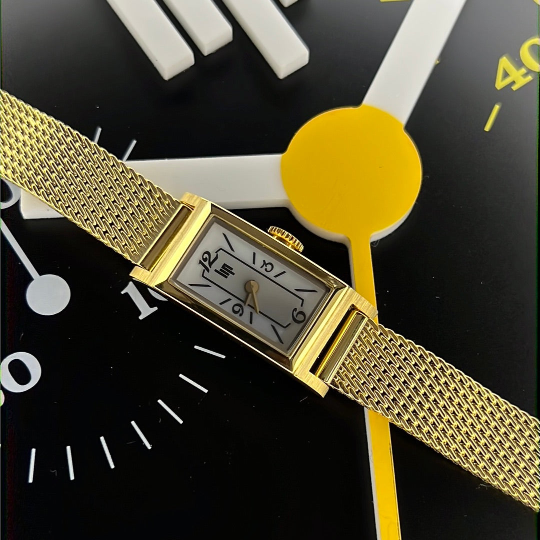 blanc finition 2 tons, aiguilles dorées, index noirs