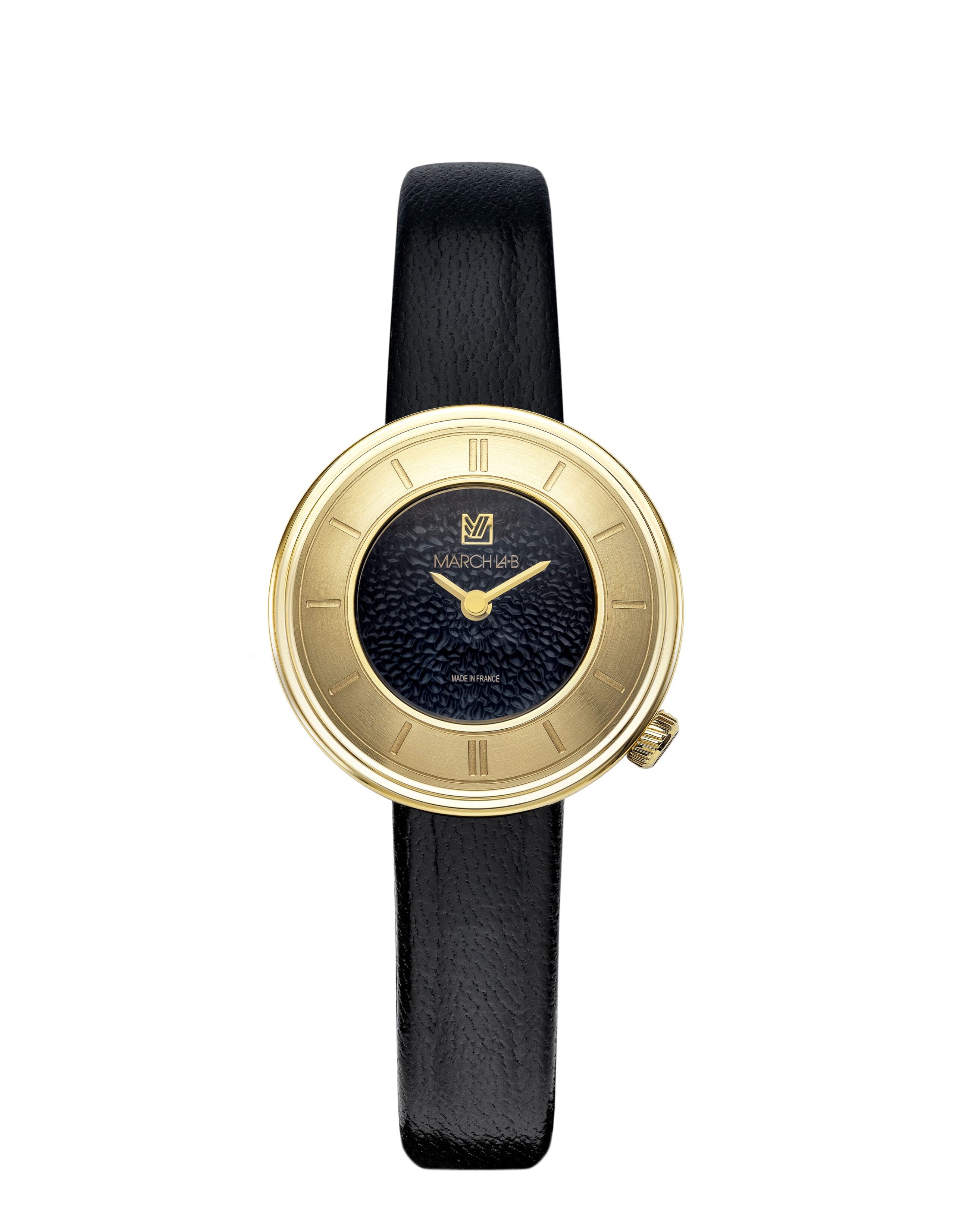 Tout en rondeur, le boîtier de la Lady Volante s’inspire des montres « Disco Volante » des années 70, ces icônes Space Age aux courbes sensuelles et futuristes. Véritable soucoupe de lumière, il se décline en doré ou argenté, pour une brillance subtile et précieuse.