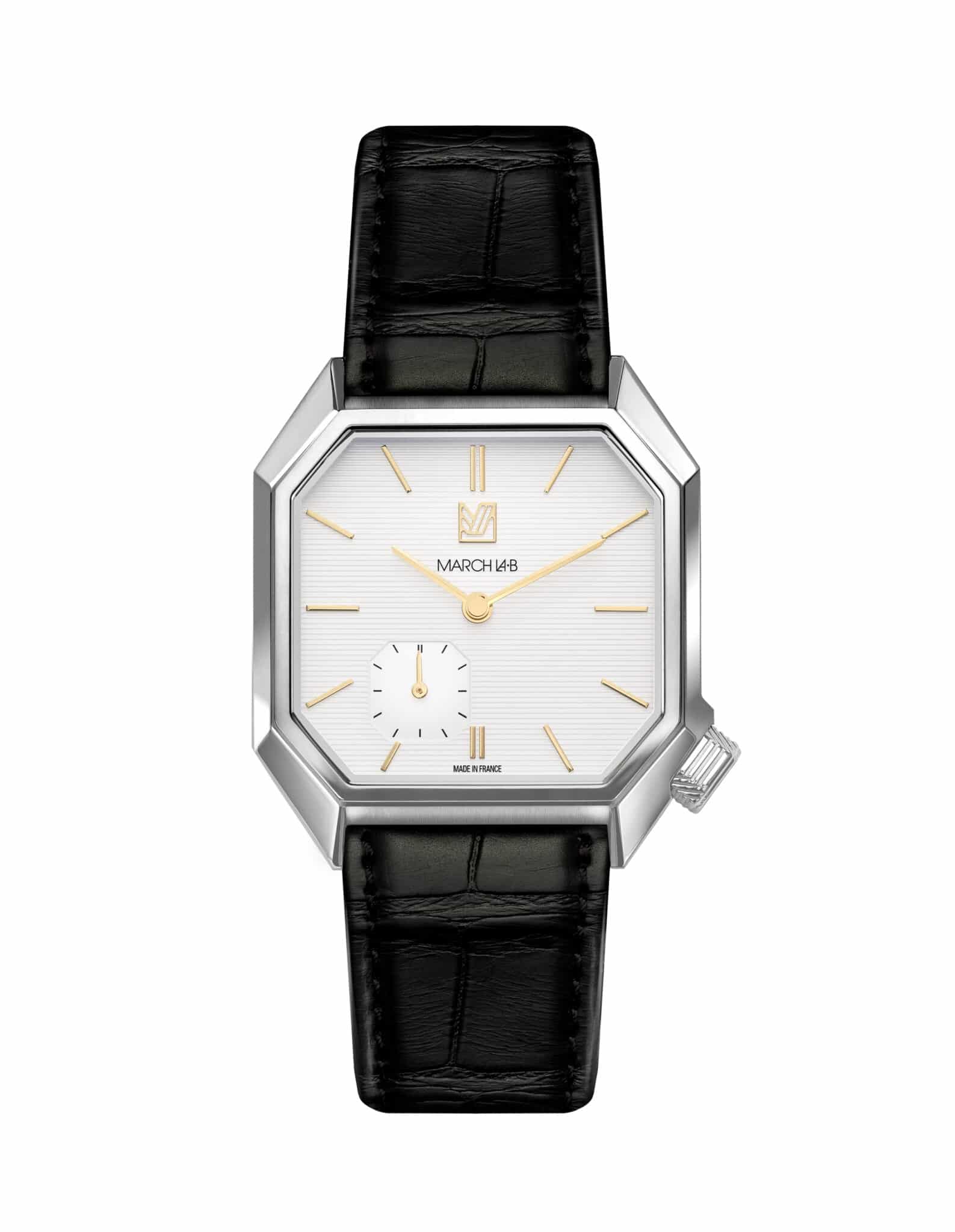 La Mansart Shelter Small Second de March LA.B est une montre qui ne laisse pas indifférent. Inspirée du classicisme français et du style Art déco, elle se distingue par son boîtier carré-octogonal aux arêtes nettes, hommage à l’architecture parisienne. Son cadran travaillé et ses proportions contenues en font une pièce singulière, raffinée et originale, conçue pour les amateurs de montres au caractère affirmé.