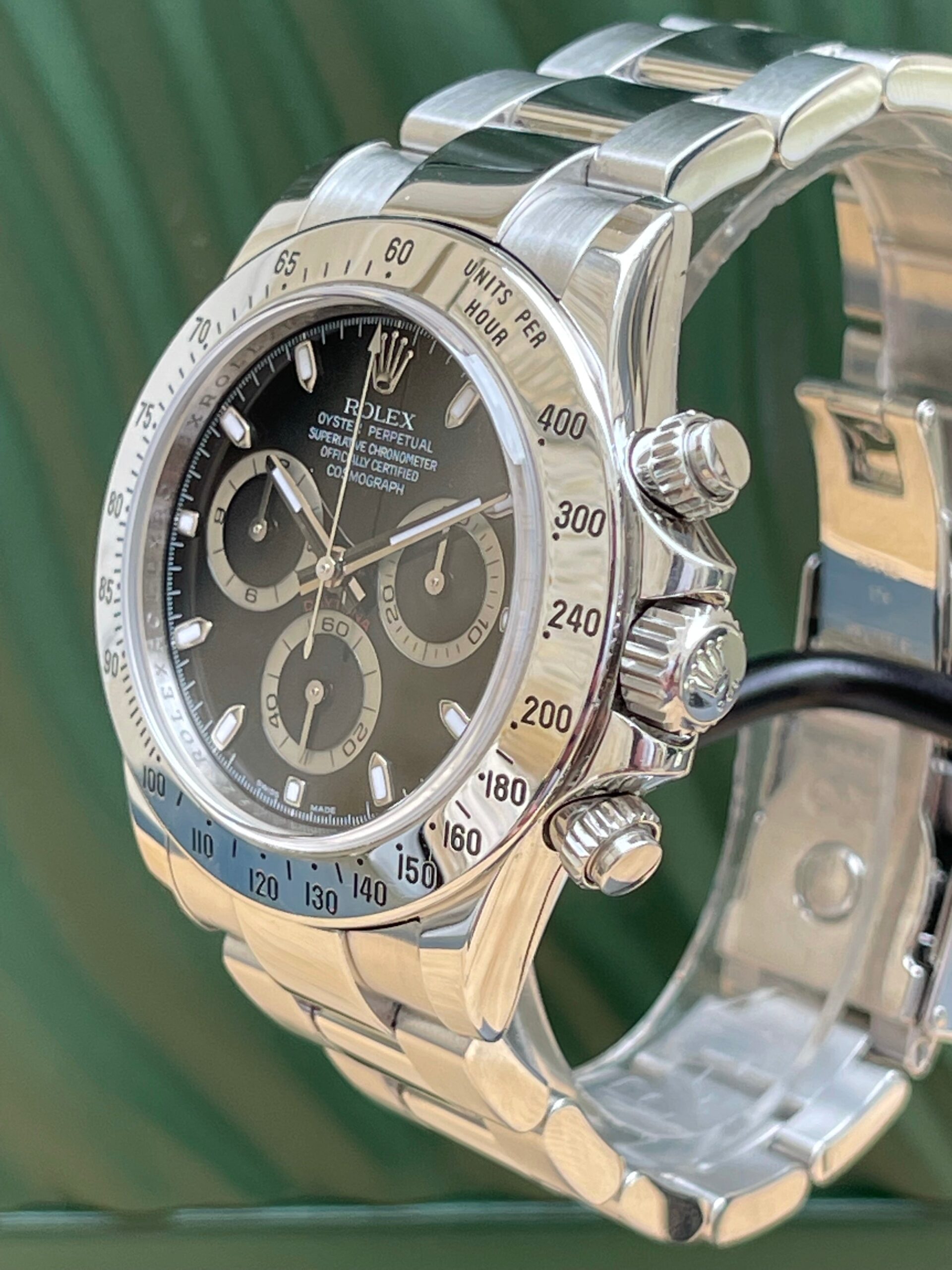 L’Oyster Perpetual Cosmograph Daytona est la montre-outil de référence des passionnés d’automobile et de vitesse.Ce chronographe a été conçu pour être le meilleur outil de chronométrage des pilotes de course d’endurance. Plus de cinquante ans après son lancement, le Cosmograph Daytona conserve un statut à nul autre pareil parmi les chronographes de sport, et continue de transcender les époques.
