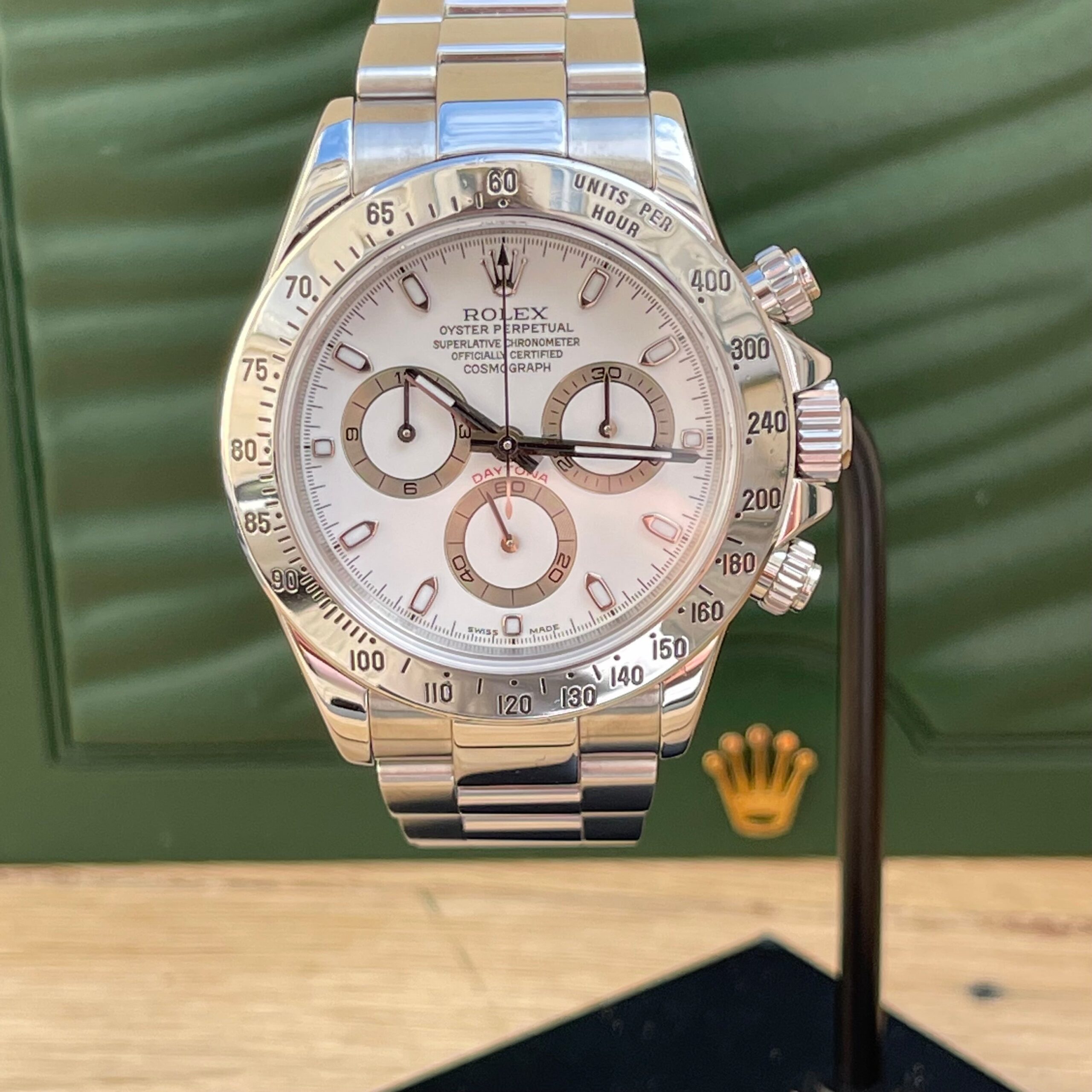 L’Oyster Perpetual Cosmograph Daytona est la montre-outil de référence des passionnés d’automobile et de vitesse.Ce chronographe a été conçu pour être le meilleur outil de chronométrage des pilotes de course d’endurance. Plus de cinquante ans après son lancement, le Cosmograph Daytona conserve un statut à nul autre pareil parmi les chronographes de sport, et continue de transcender les époques.