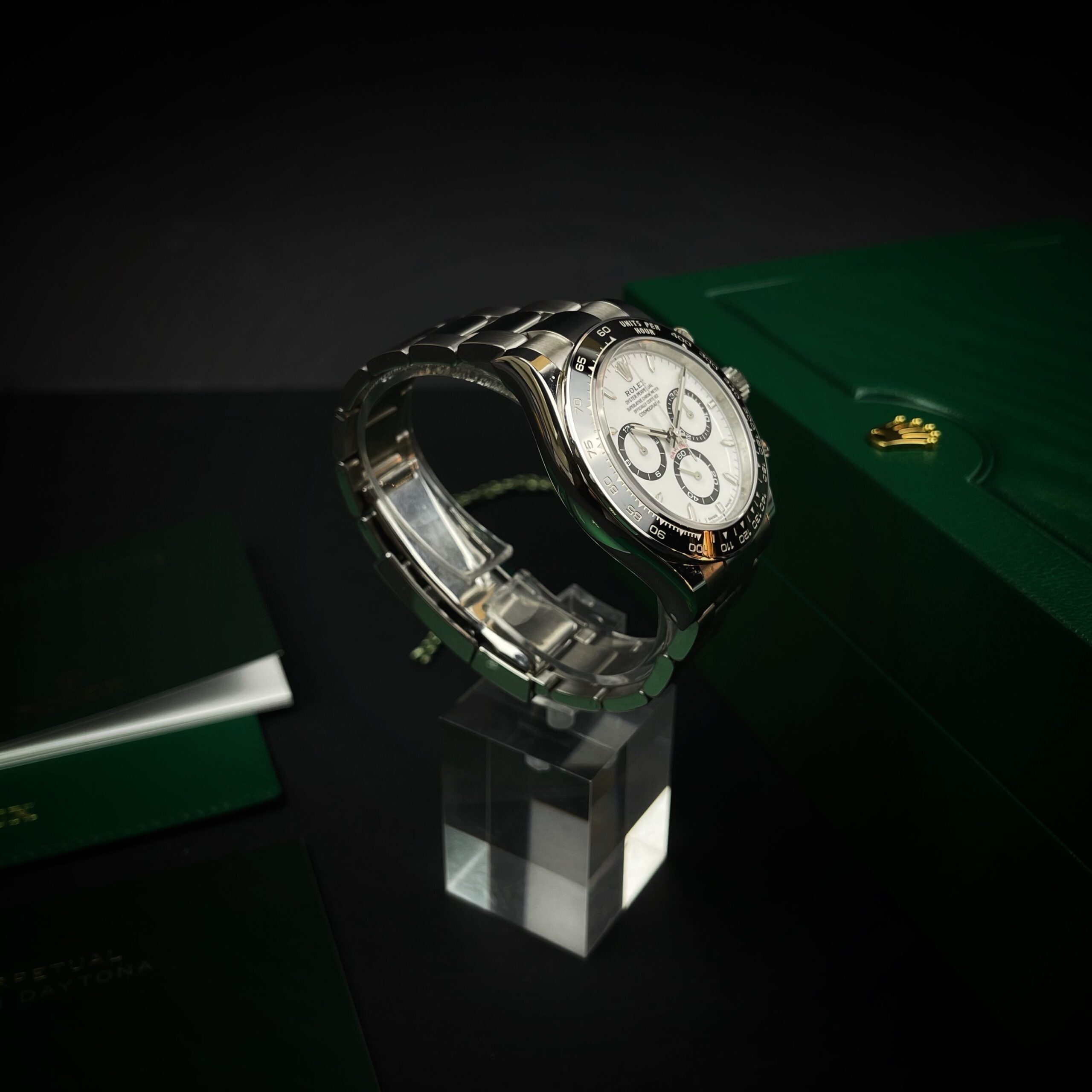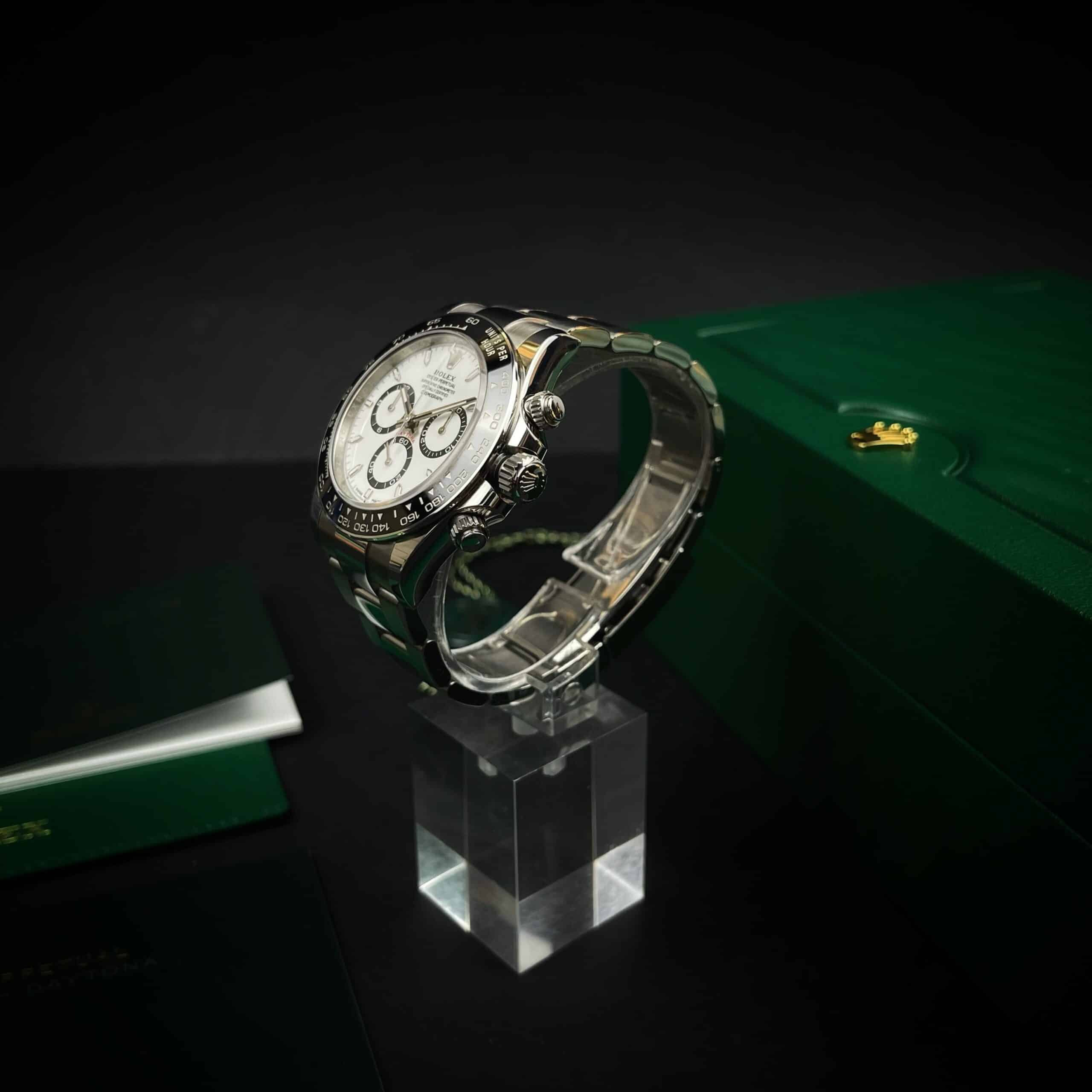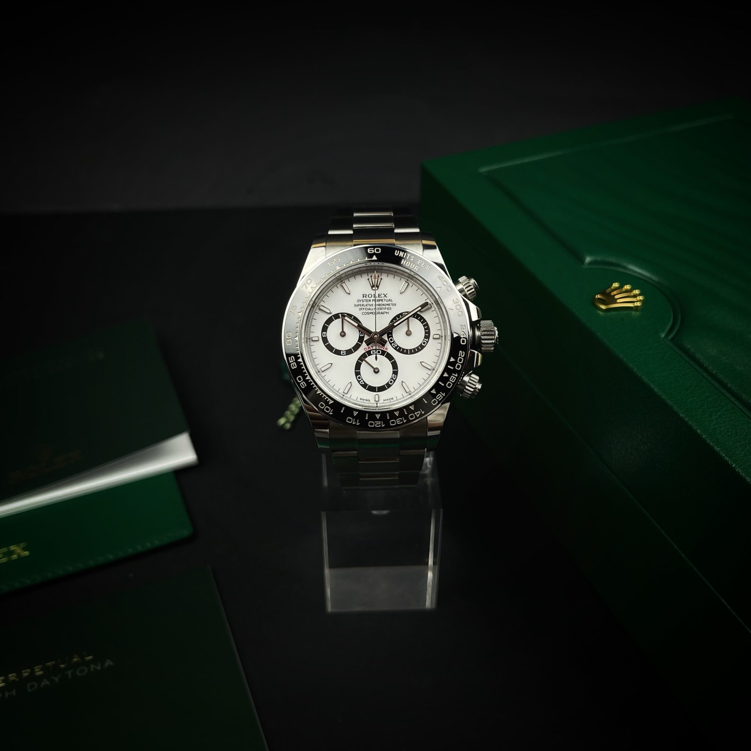 L’Oyster Perpetual Cosmograph Daytona est la montre-outil de référence des passionnés d’automobile et de vitesse.Ce chronographe a été conçu pour être le meilleur outil de chronométrage des pilotes de course d’endurance. Plus de cinquante ans après son lancement, le Cosmograph Daytona conserve un statut à nul autre pareil parmi les chronographes de sport, et continue de transcender les époques.