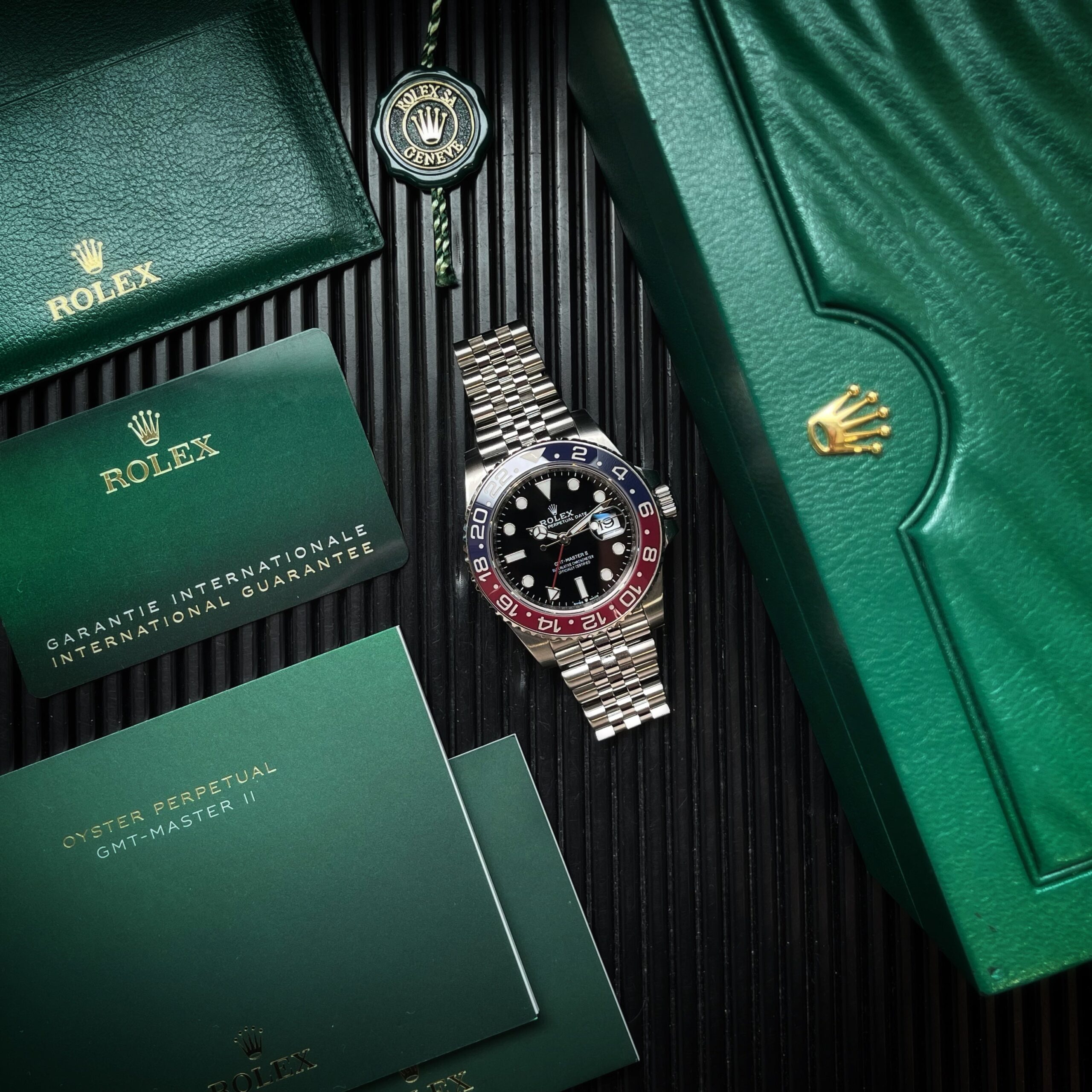 La Rolex GMT-Master II référence 126710BLRO, surnommée “Pepsi” en raison de sa lunette bicolore rouge et bleue, est une montre emblématique de la manufacture genevoise. Introduite en 2018, elle reprend le design iconique du modèle original conçu pour les pilotes dans les années 1950. Dotée du calibre 3285, un mouvement de pointe offrant une réserve de marche de 70 heures, elle permet l’affichage d’un second fuseau horaire grâce à son aiguille GMT rouge. Son boîtier en acier Oystersteel de 40 mm, associé au bracelet Jubilé ou Oyster, allie élégance et robustesse. Véritable icône de l’horlogerie, la 126710BLRO séduit autant les collectionneurs que les voyageurs avertis.