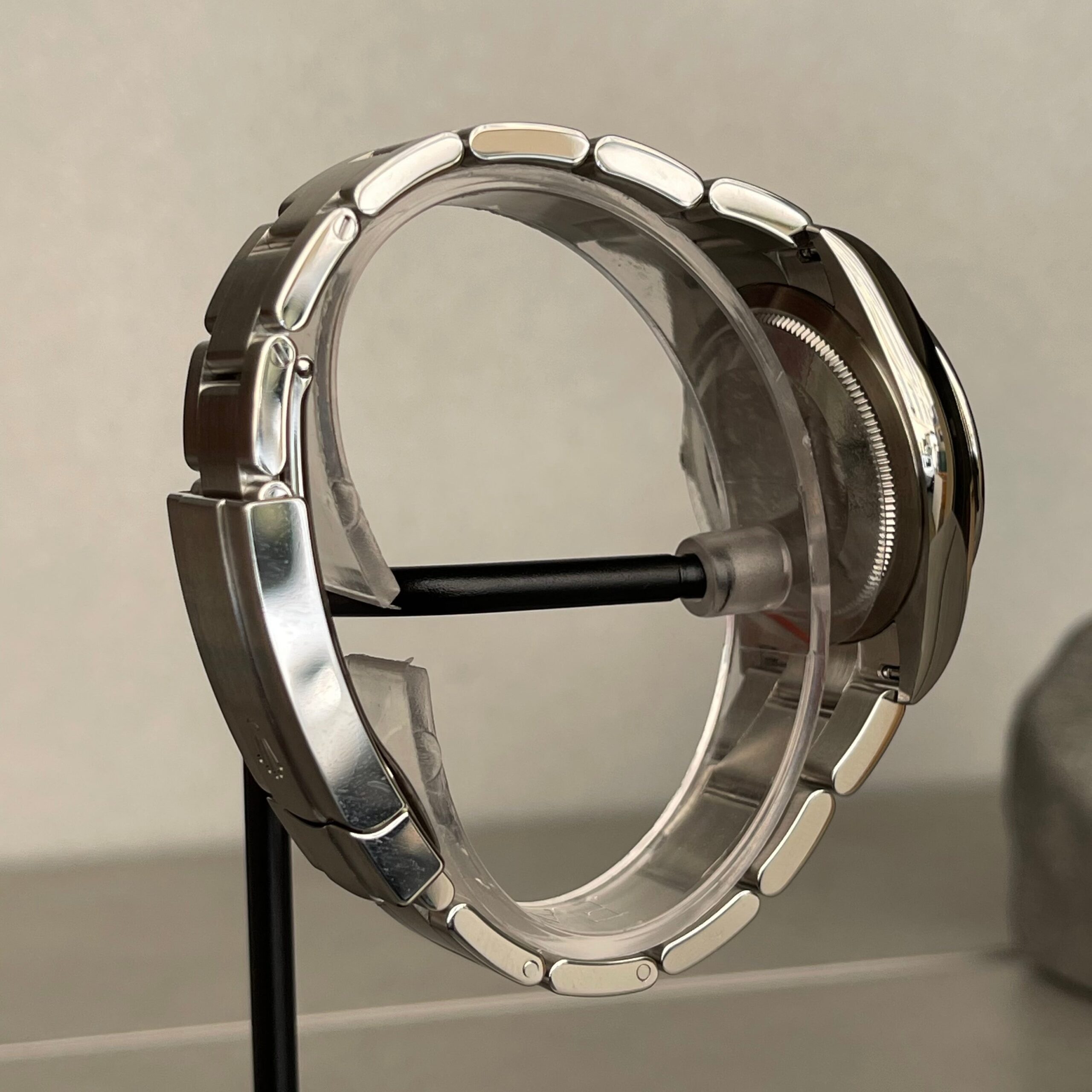 • Montre neuve : elle est issue directement du réseau officiel, jamais portée, livrée avec son écrin d’origine, sa carte de garantie internationale et ses papiers complets.