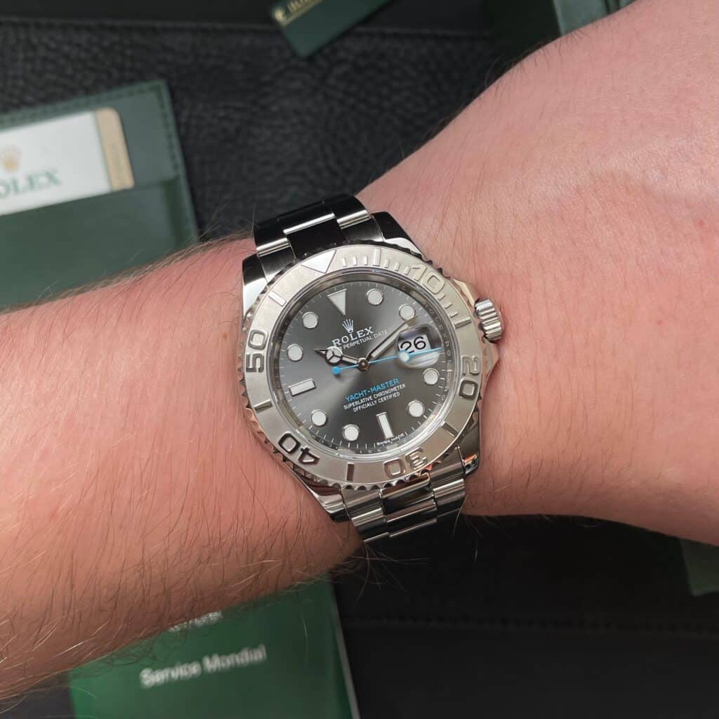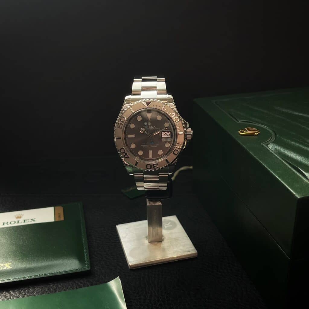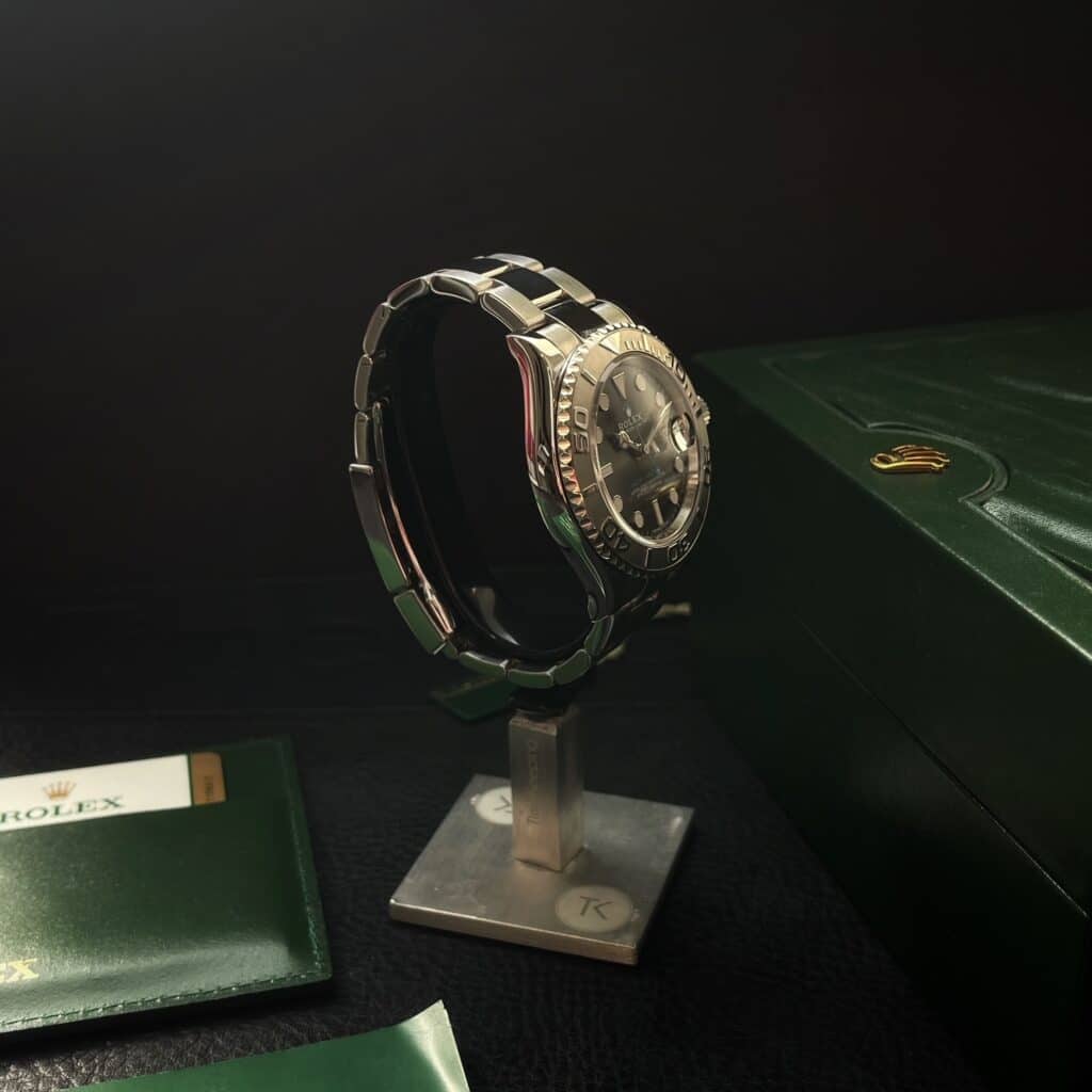 La Rolex Yacht-Master 116622 est une montre nautique iconique qui allie élégance et performance. Dotée d’un boîtier Oyster de 40 mm en acier inoxydable et d’une lunette en platine, elle offre un design raffiné et sportif. Son cadran gris argenté, sublimé par des index luminescents, assure une lisibilité optimale en mer comme sur terre. Animée par le calibre automatique Rolex, reconnu pour sa précision et sa fiabilité, cette Yacht-Master est étanche à 100 mètres. Polyvalente et prestigieuse, elle séduit les amateurs de montres sportives haut de gamme et les passionnés de navigation.