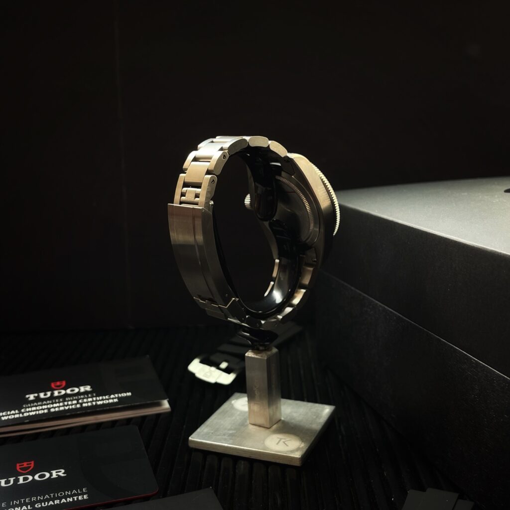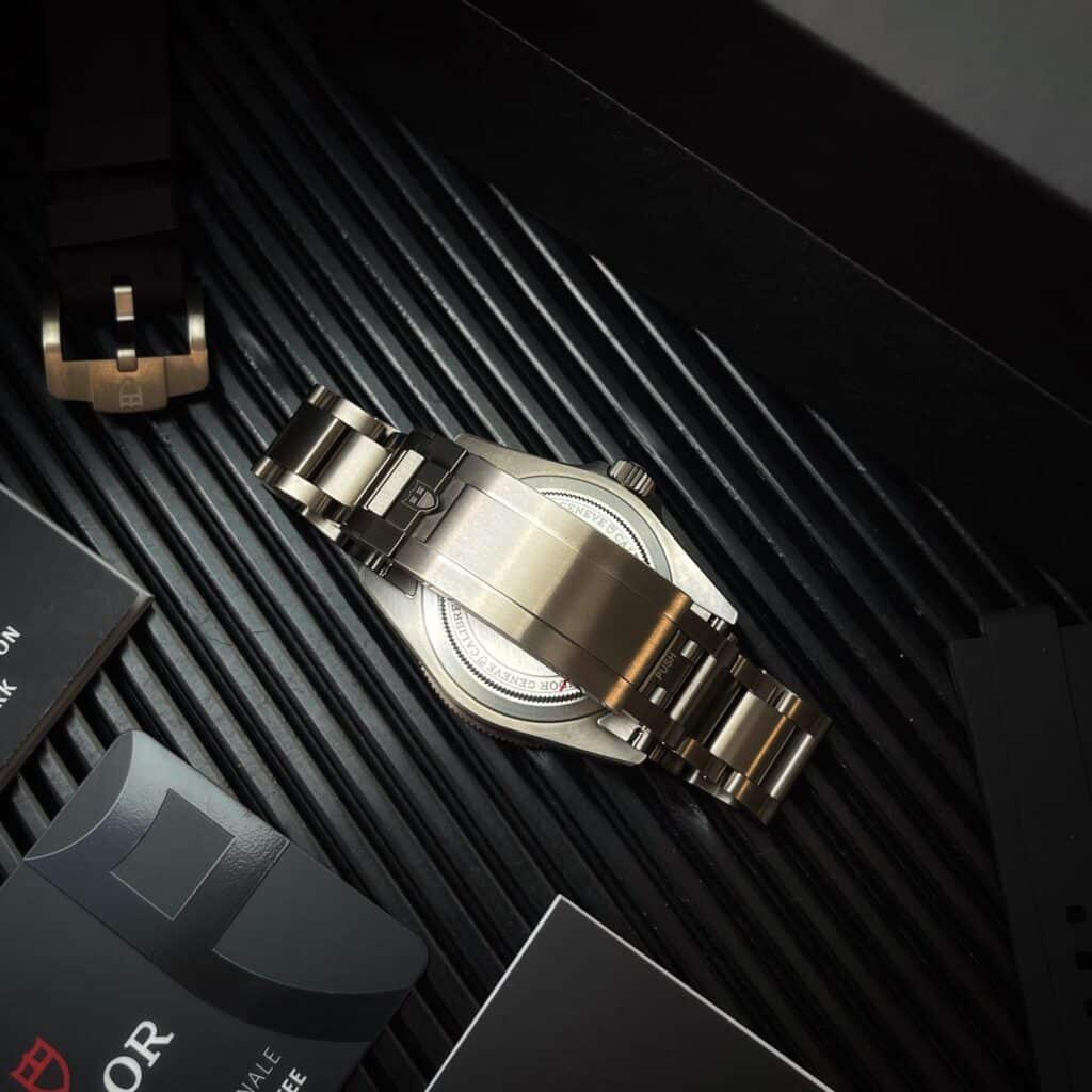 La Tudor Pelagos 39, taillée dans un titane de grade 2 satiné, combine robustesse professionnelle et confort exceptionnel au poignet grâce à son boîtier compact de 39 mm. Sa lunette tournante en céramique luminescente et son cadran noir soleillé offrent une lisibilité optimale en toutes conditions, de la plongée en profondeur à l’usage quotidien.
